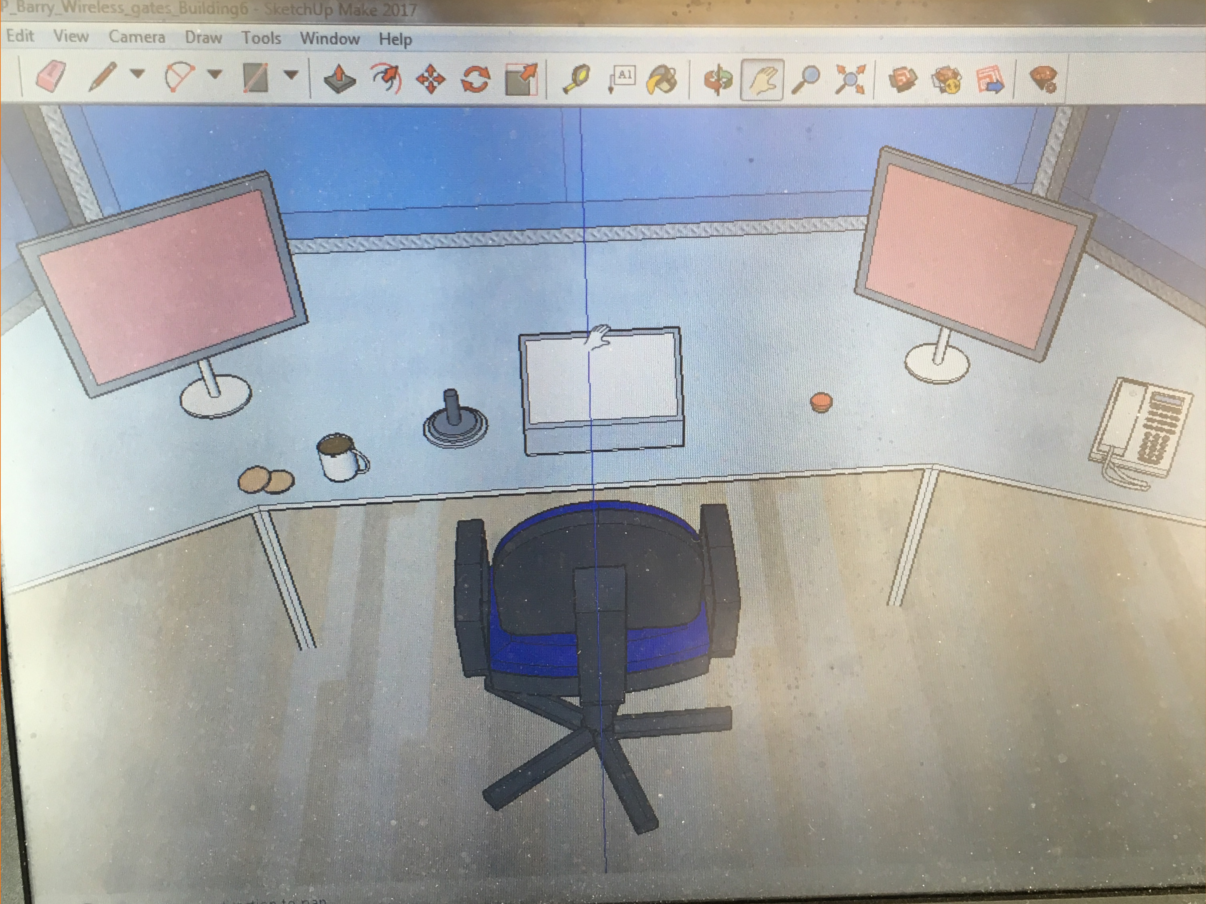 This project included a few mock-up’s of displays and desks before a standing, dual HMI solution was chosen. Sketchup was used to quickly prototype ideas